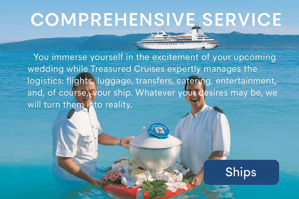 Are you dreaming of chartering a ship for your wedding? With Treasured Cruises, you're in excellent hands. We will carefully select the perfect cruise ship from our extensive global fleet, tailored to your desires, and make it exclusively yours.