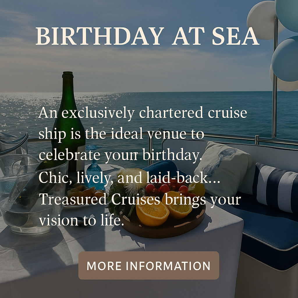 Renting an entire cruise ship for your celebration may seem like a monumental task, but rest assured, we are here to assist you every step of the way! Treasured Cruises will handle all the planning, from coordinating with the shipping company to managing flight logistics and providing VIP care for your guests.